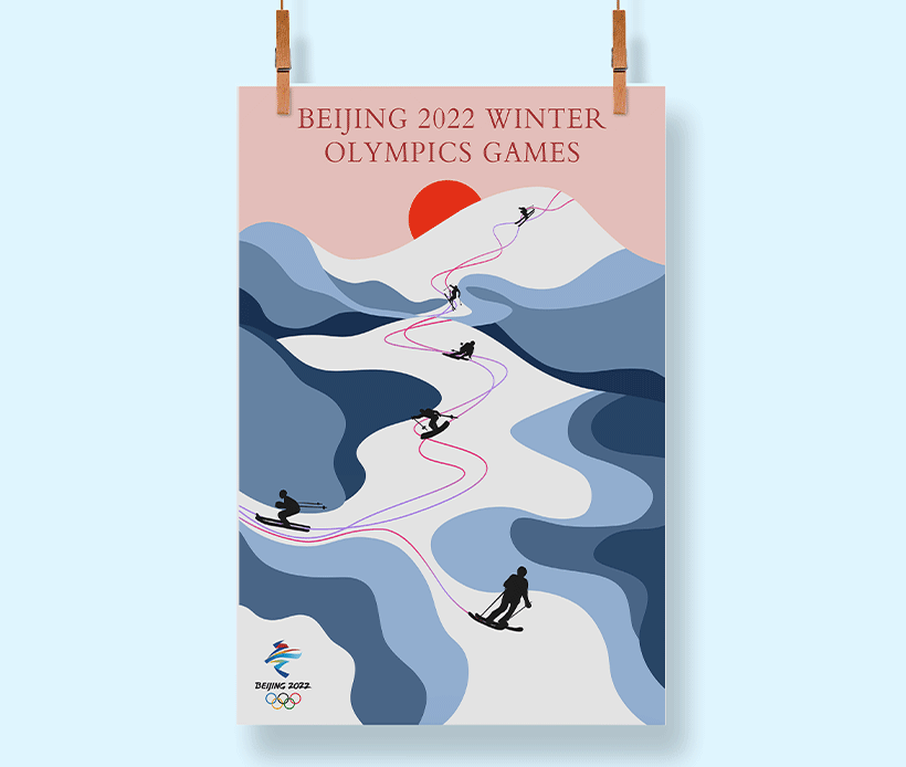 This is a set of posters made for the 2022 Beijing Winter Olympics, showing different Winter Olympic sports.
