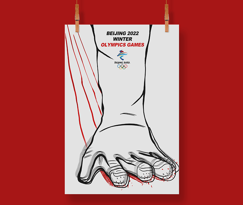 This poster mainly wants to show the sport of luge. This sport has a very special equipment, which are the gloves with steel spikes. I used this glove as the theme to show the dynamic of a sled runner.
