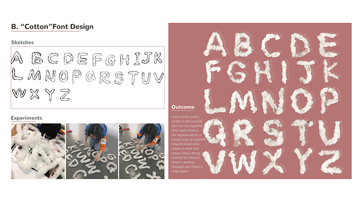 In this project called “smoking under 18", I chose two fonts and posters to remind tobacco retailers to check IDs before selling, to make sure that the purchase of tobacco is legal and to promote "“do not let tobacco harm adolescents" in schools. While we have seen posters or campaigns about quitting smoking at subway or bus stations, the idea of raising awareness among tobacco retailers and banning.